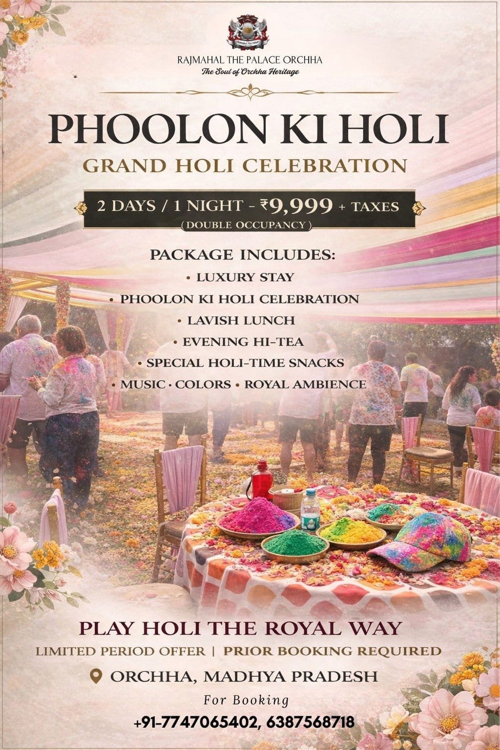 Email: rajmahalreservation@gmail.com, rajmahalorchha@gmail.com
